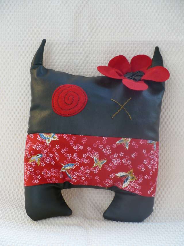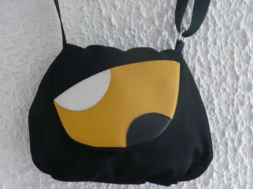 petite besace originale en cuir et tissus avec un motif seventies